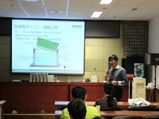 本次研究生交流论坛,我们特别邀请到了Abcam香港的技术专家——梁正晞博士。梁博士对wester blot技术非常熟悉精通,这次讲座就和大家分享了western blot trouble shooting的技术经验。并且,梁博士还给大家介绍了abcam的新产品——Optiblot,蛋白电泳和蛋白印迹系列产品能够帮助您节省时间,确保您不断获得出众的实验结果。Optiblot系列产品有电泳凝胶、电泳试剂盒、缓冲液、辅助试剂和凝胶染色。