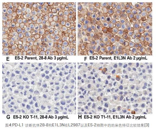 对20名NSCLC和20名黑色素瘤患者的TC和IC的IHC检测结果显示:相对于E1L3N,28-8是一个更优秀的伴随诊断抗体[3]。