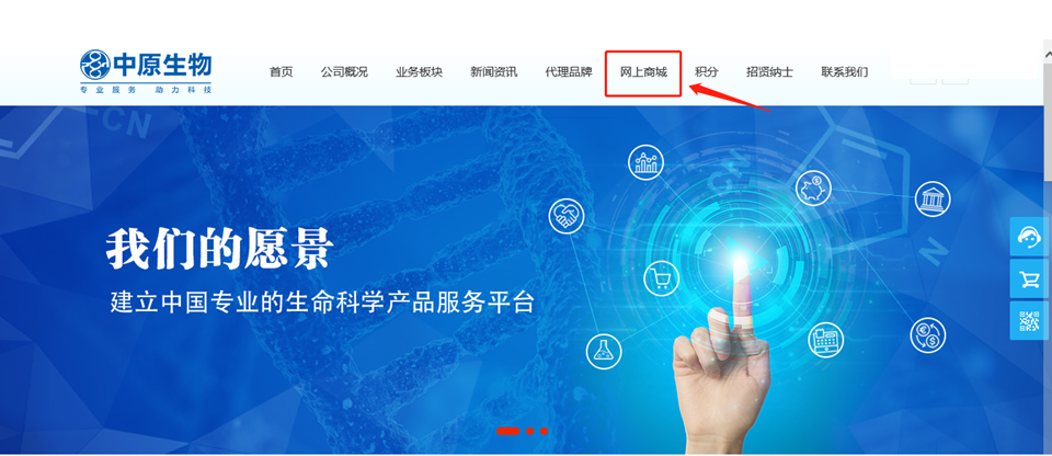 中原公司一直以“推动生命科学事业,服务于全人类健康”为使命!为客户打造优质高效,安全可靠的生命科学产品公共服务平台。面对日新月异的全球生物产业热点需求,中原公司不断提高服务水平,充分发挥自身优势,服务理念从“传统模式”向“互联网+模式”升级。中原公司网上商城于2019年5月1日正式上线,商城地址: //shop.lili-lala.com/