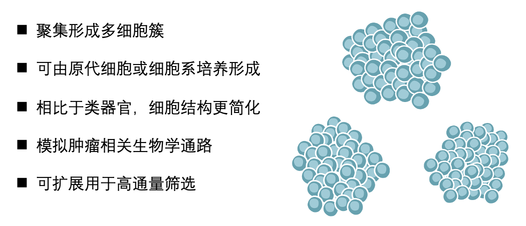 常见的 3D 培养模型为球状体和类器官,前者是单细胞群的细胞簇或者聚集体,或不同细胞的混合体,结构相对简单。球状体主要体现出肿瘤细胞间在三维环境下的梯度渗透、肿瘤内部缺氧和坏死等,可以作为一种高通量的药物筛选工具。