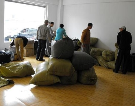 On April 25, 2010 the truck which carried hundreds of anti-cold staff from Beijing Zhongyuan Ltd. arrived the transshipment point smoothly. In order to help to distribute those clothes, some volunteers came to the transshipment point on their own initiative. The most useful anti-cold clothes such as down wears and wadded jackets were firstly despatched, the sweaters, heavy jackets and thermal underwears were despatched secondly.