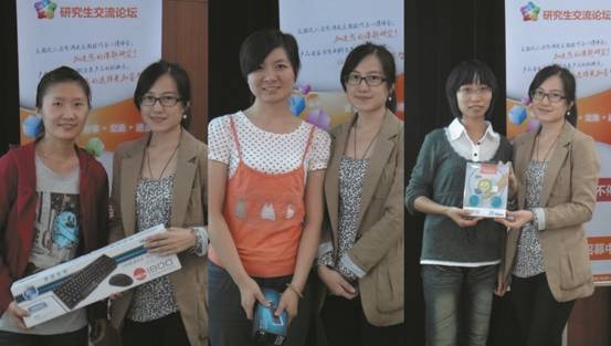 中原公司研究生交流论坛的一个重要环节,那就是最激动人心的抽奖环节,除了每一位到场的老师和同学都能获得疯狂的小鸟一只外,我们还现场抽取了迷你键鼠,无线音乐耳机和无线键鼠套装三个大奖,恭喜如下获得大奖的三位幸运儿:
