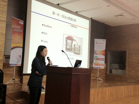 第一个讲题是由中原公司市场部资深技术专家——张瀛丹给大家讲解的Western blot实验技术,她深入浅出地介绍了Western blot实验中常见的问题及解决方法,得到了同学和老师们的一致肯定。之后,张瀛丹又介绍了FTA卡的使用方法。并且在讲座后为每位同学免费分发了一些FTA卡试用装。