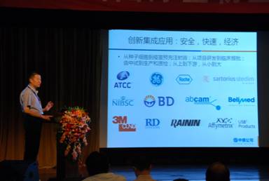 中原公司首席科学家朱希灿介绍其潜心多年摸索并逐渐成熟的生物制品管道化封闭生产工艺,