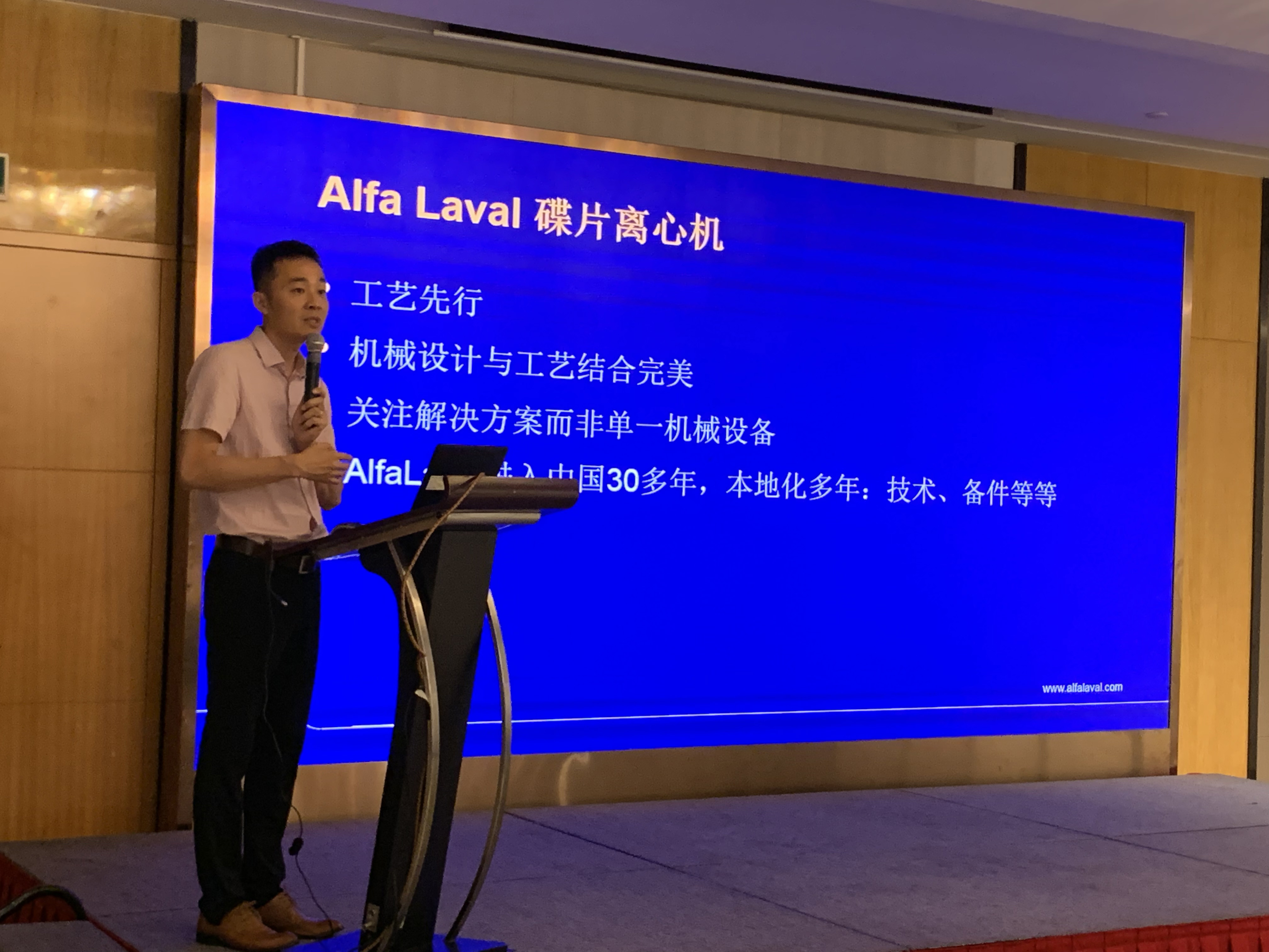 Alfa Laval应用产品专家朱闪老师对“碟式离心机在生物制药行业的应用”进行主题演讲