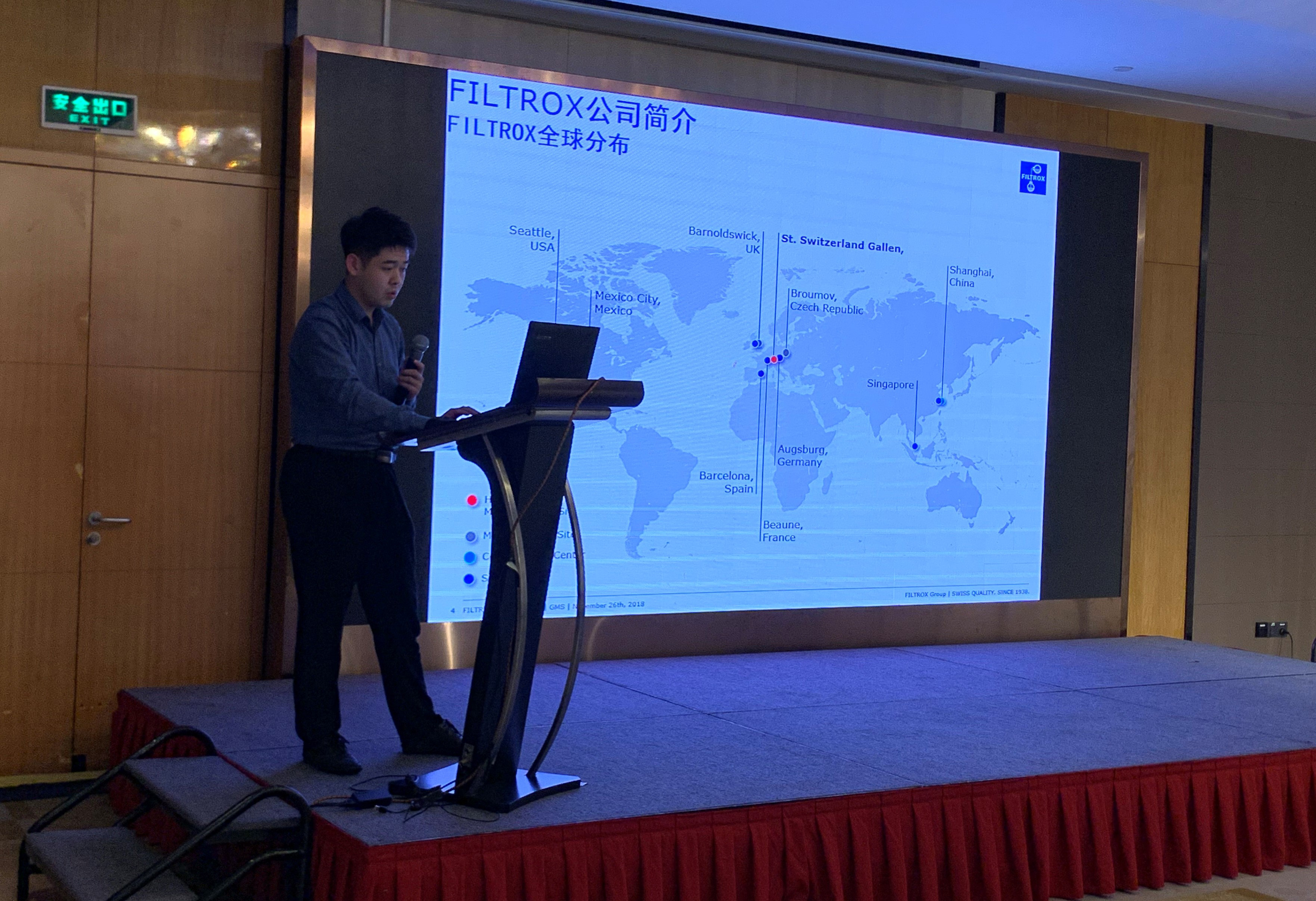 Filtrox公司产品技术专家李宇然老师对“高密度培养液/发酵液的澄清过滤方案”进行主题演讲