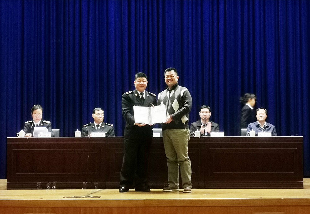 比欧联科副总裁李志刚接受北京海关副关长高瑞峰颁发的AEO证书