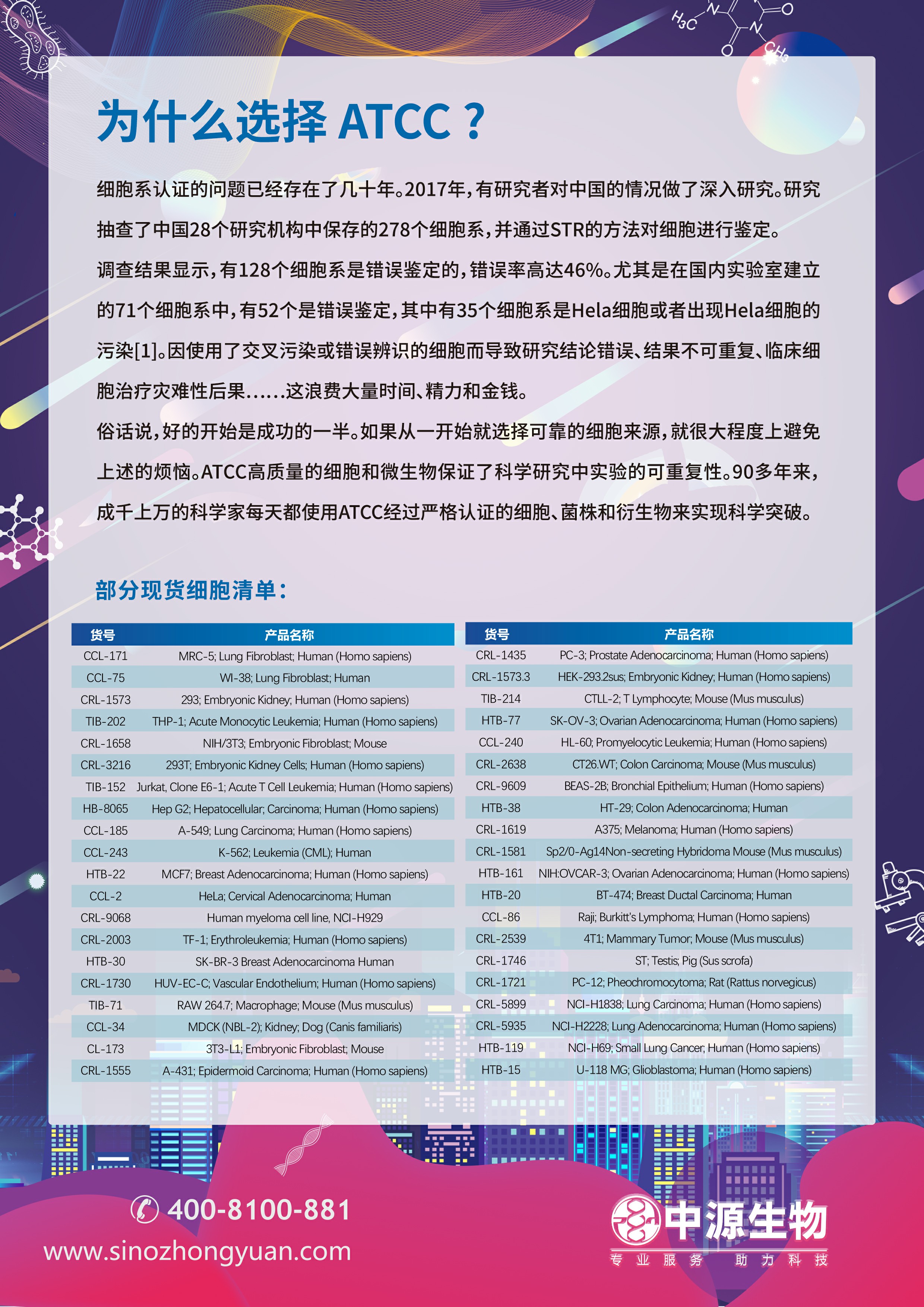 从中源公司购买原装ATCC细胞类产品