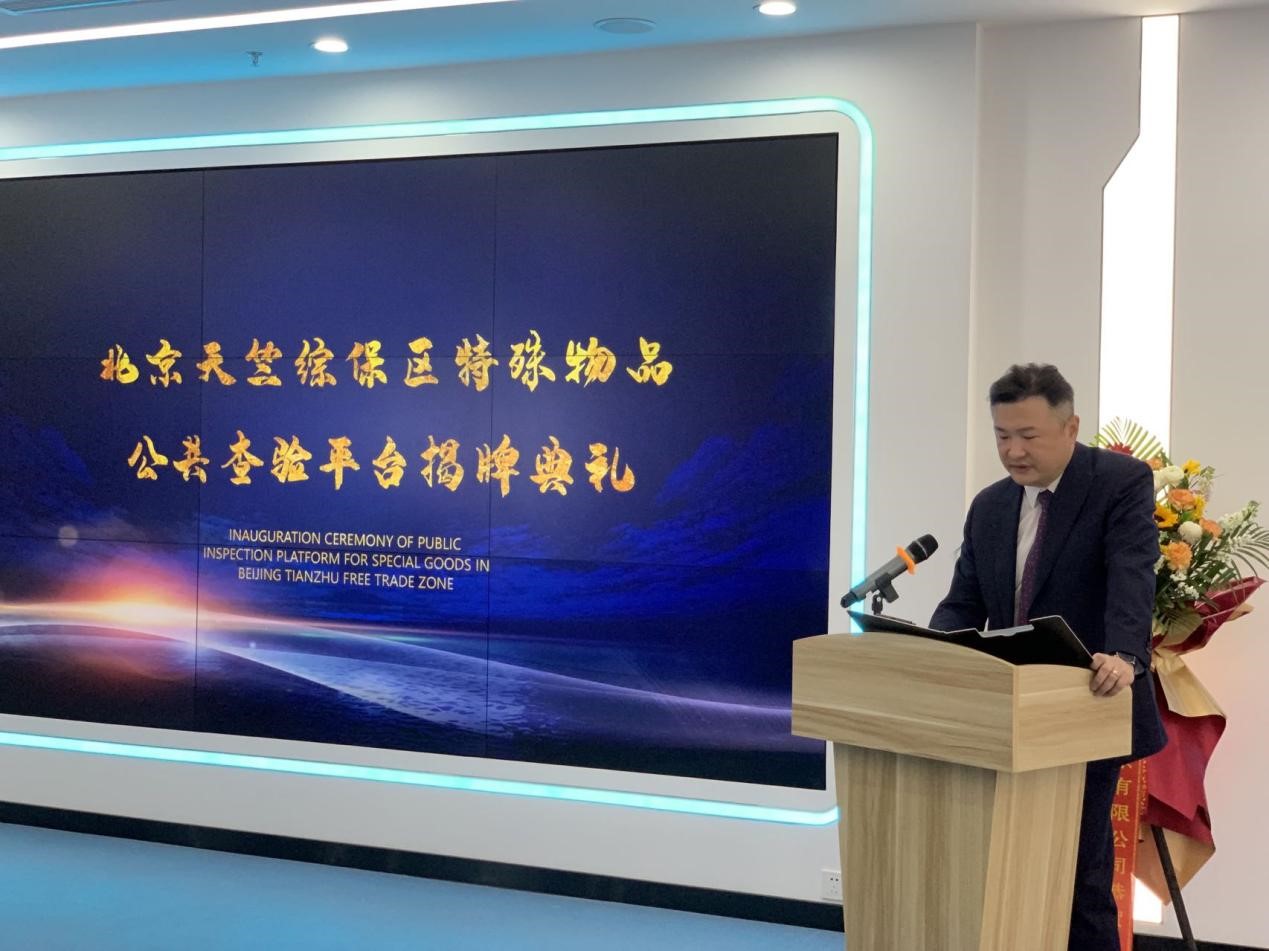 致辞结束后,综保区管委会满群杰副主任和天竺海关肖国英副关长为公共查验平台揭牌。