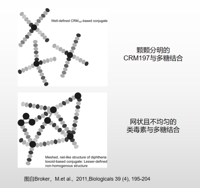 CRM 197是一种无毒的白喉毒素(DT)突变体,因其1个碱基G突变为A,使第52位氨基酸Gly突变为Glu,造成酶活位点的改变,无法与EP结合,导致其丧失细胞毒性。但由于其b片段的蛋白序列及结构未发生任何变化,没有毒性的CRM197蛋白仍然可与敏感细胞的受体结合。即CRM197蛋白在丧失酶活性及毒性的同时仍保留白喉毒素的免疫原性,且其与其它多种白喉毒素及变异体相比,具有完全无毒,完整性最高、突变最少、结构最接近,受体阻断能力最强的优点。因此CRM197成为一种理想的结合疫苗载体蛋白,通过与其他抗原相交联,提高了疫苗的免疫原性,因此具有广阔的应用前景。它在许多已批准的用于治疗脑膜炎和肺炎球菌感染等疾病的结合疫苗中用作载体蛋白。