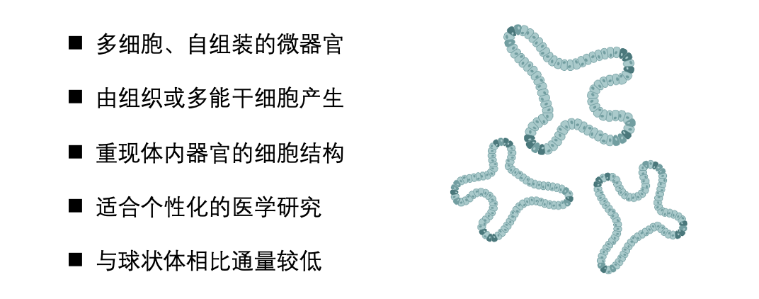 常见的 3D 培养模型为球状体和类器官,前者是单细胞群的细胞簇或者聚集体,或不同细胞的混合体,结构相对简单。球状体主要体现出肿瘤细胞间在三维环境下的梯度渗透、肿瘤内部缺氧和坏死等,可以作为一种高通量的药物筛选工具。