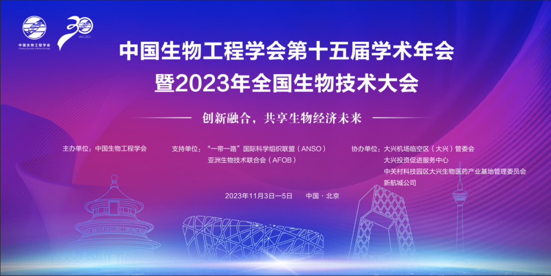 11月3日-5日,以“创新融合,共享生物经济未来”为主题的中国生物工程学会第十五届学术年会暨2023年全国生物技术大会在北京市大兴区召开。
