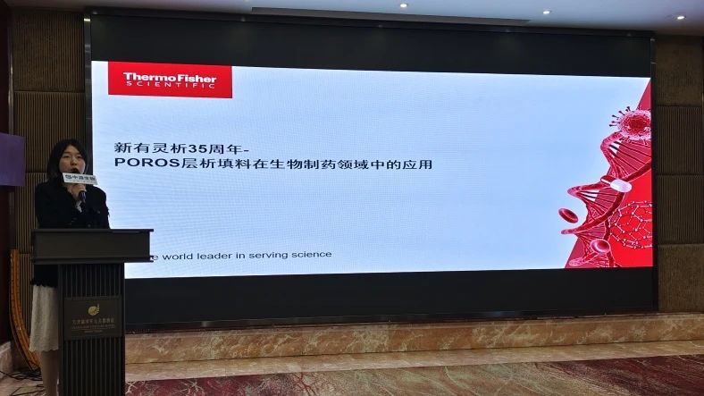 赛默飞生物工艺纯化技术支持经理常佳妮以《新有灵析35周年-POROS层析填料在生物制药领域中的应用》为题,讲解了POROS填料产地、生产工艺流程、技术优势等内容。